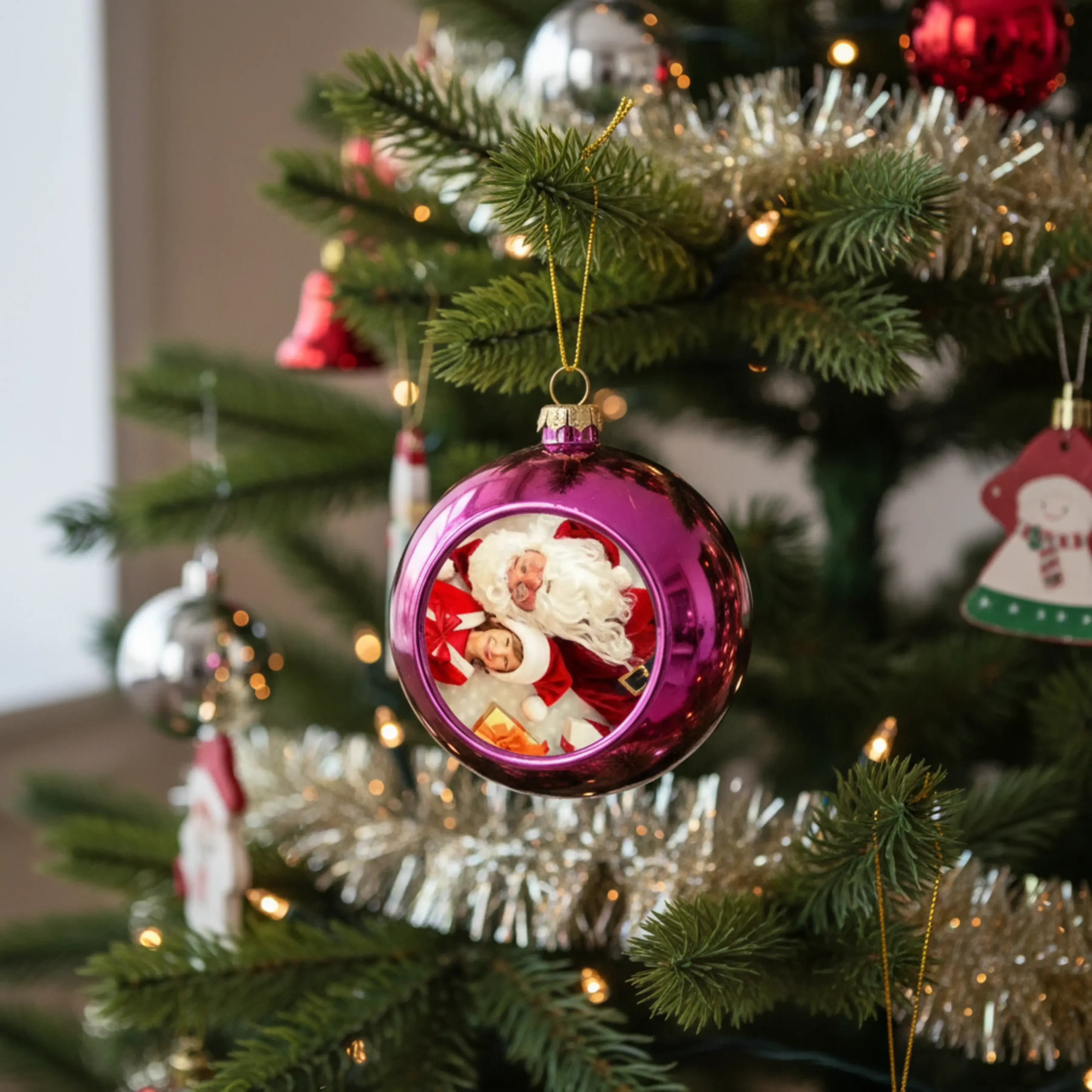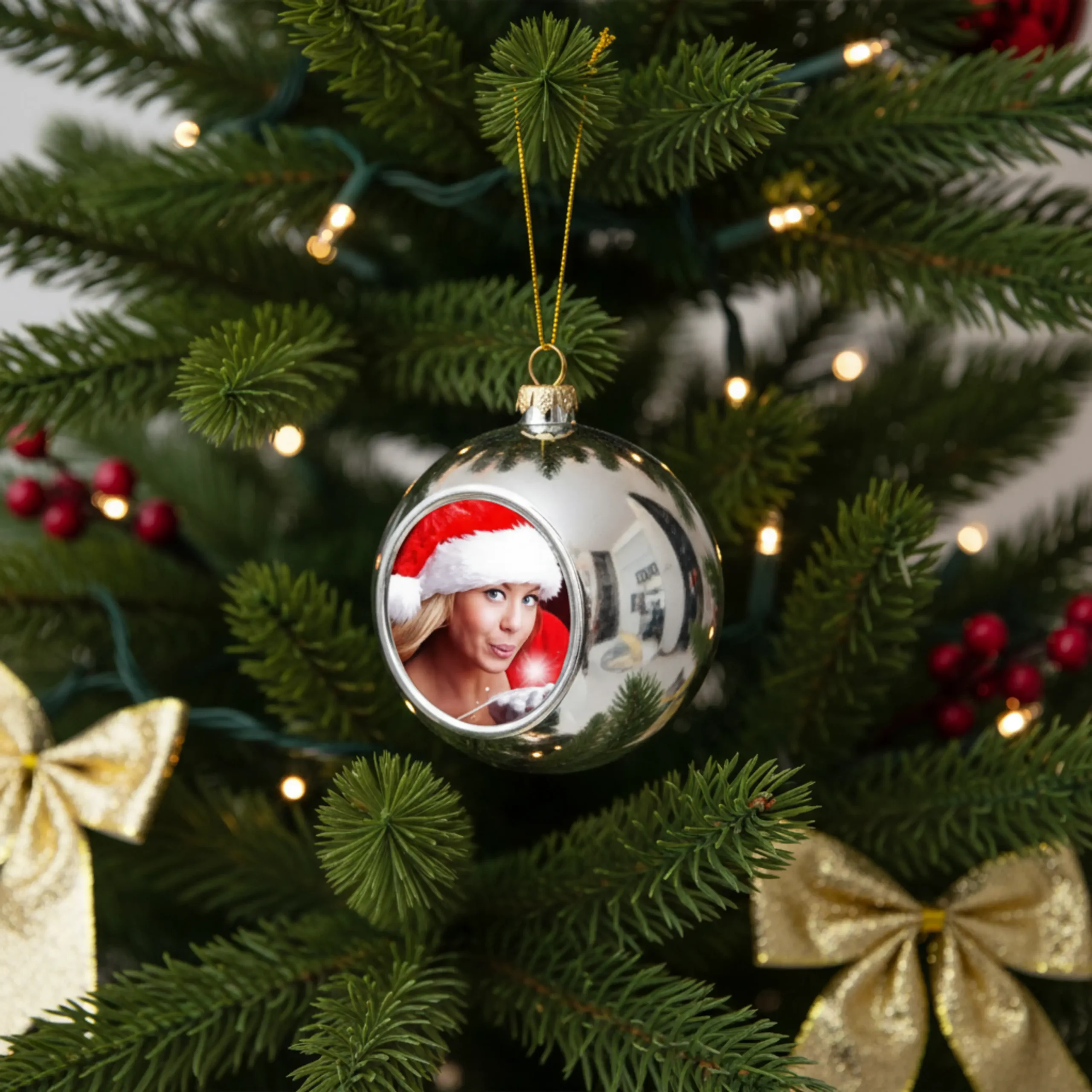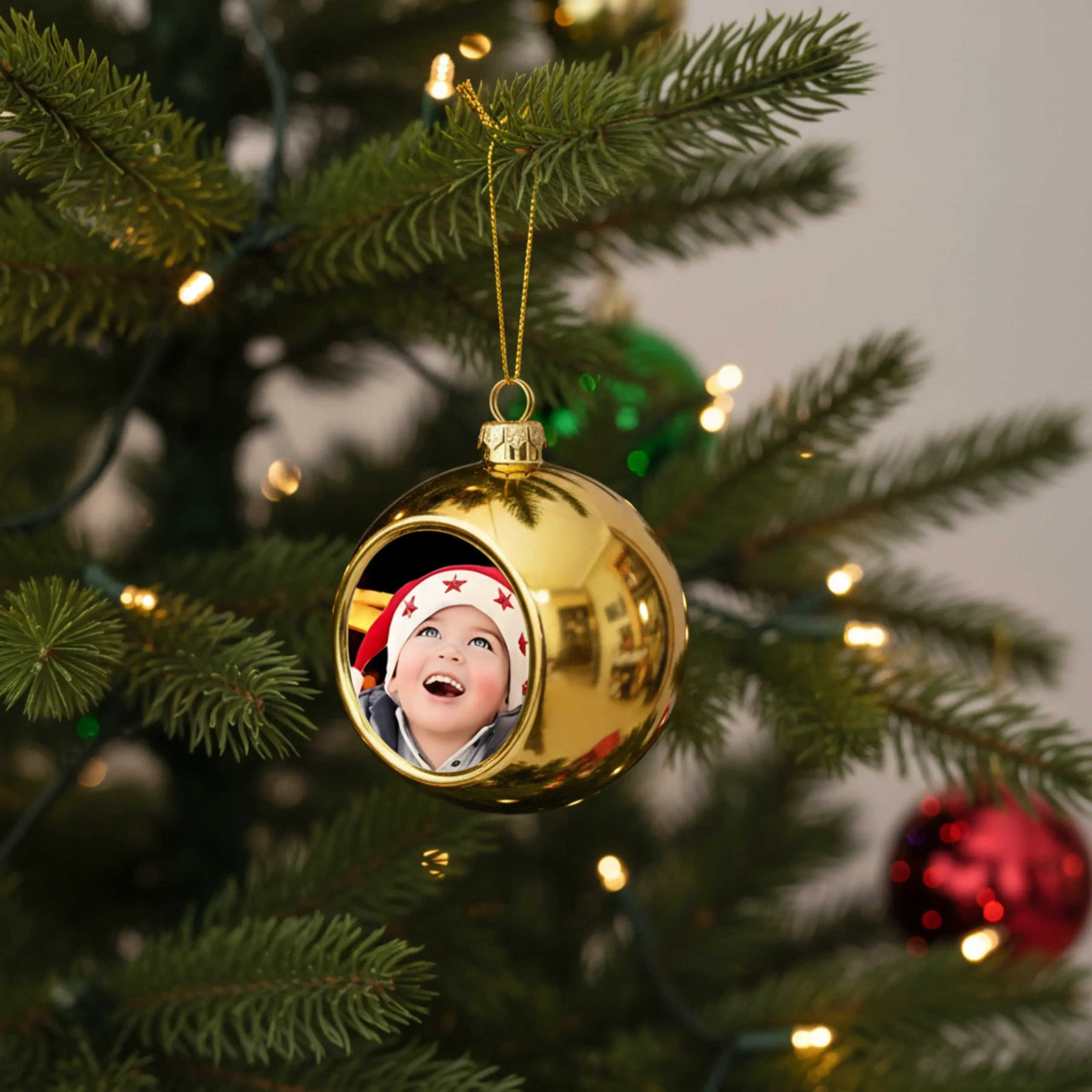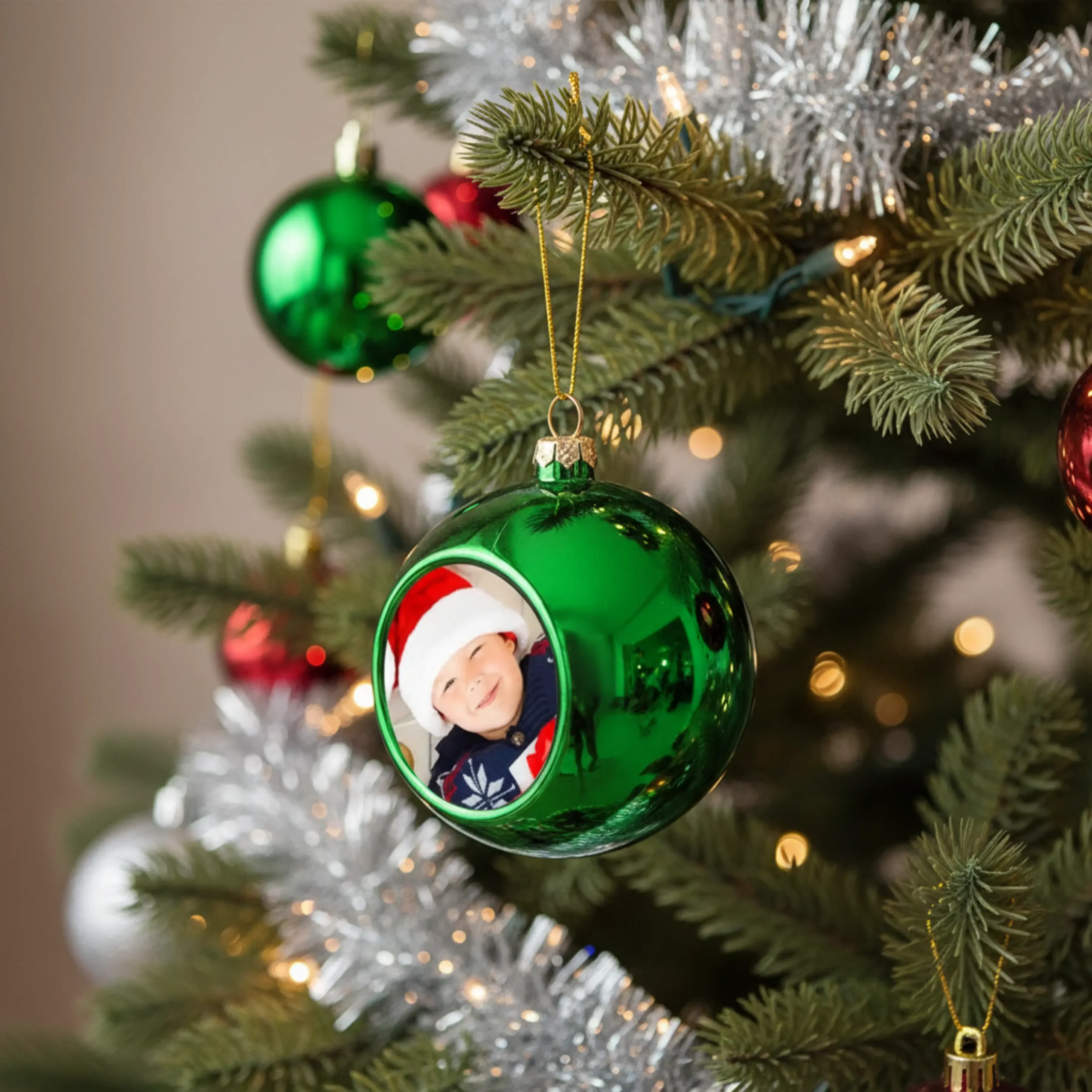 Efni: Jólakúla með þinni mynd. Jólakúlan er um 8 cm að stærð.